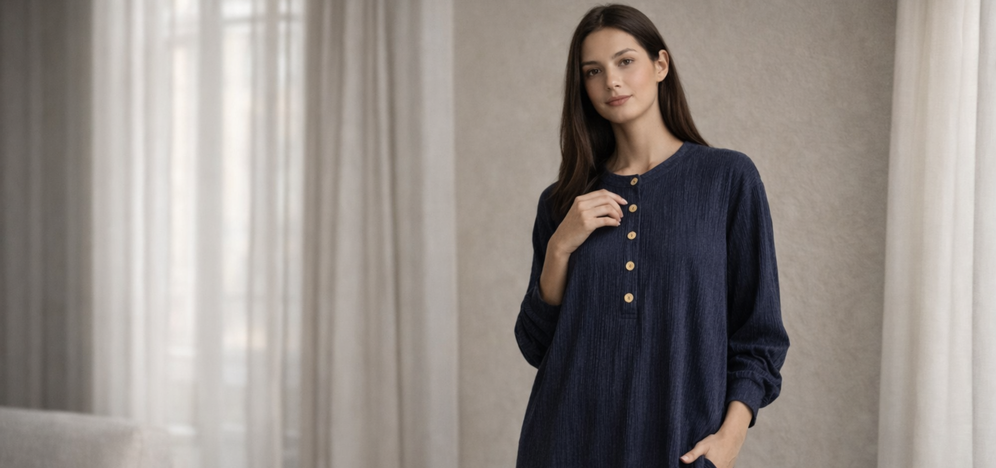 We carefully select lightweight, breathable, and soft fabrics that feel comfortable against the skin while maintaining a beautiful drape. Each product description includes specific fabric details to help you choose confidently.